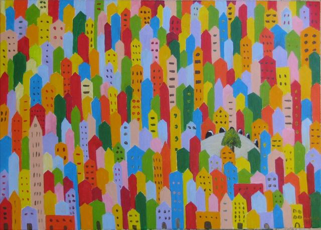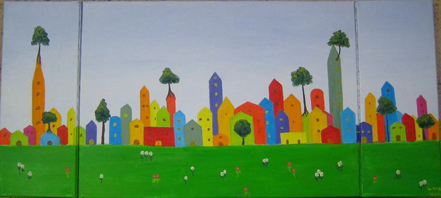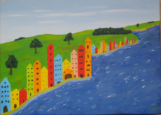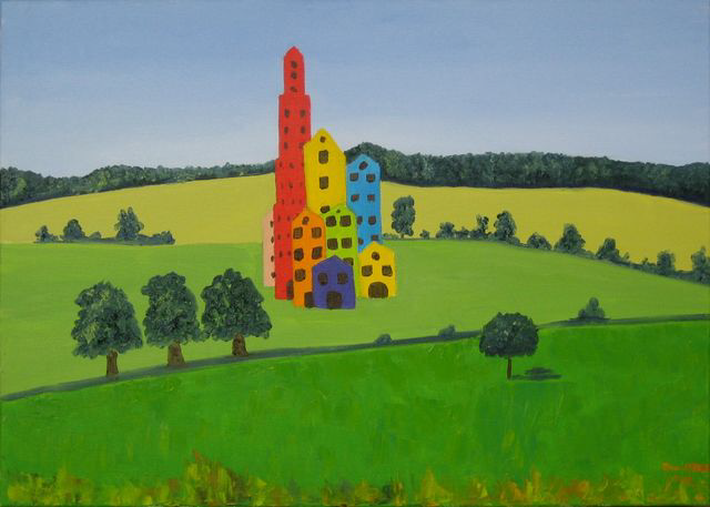 Ville à la campagne - huile/toile- 50x70-(385)